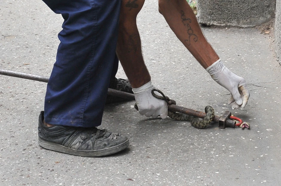 Zmija ribarica dugačka jedan metar izazvala je juče ujutro paniku među putnicima koji su čekali tramvaj u Ulici cara Dušana, na Dorćolu, kad je naočigled njih prešla kolovoz, a zatim se zavukla u oluk. Ubrzo je čak šest policajaca opkolilo prostor oko zalutale zmije, pre nego što su stigli veterinari, koji su je ukrotili uz pomoć kuke i štapa.