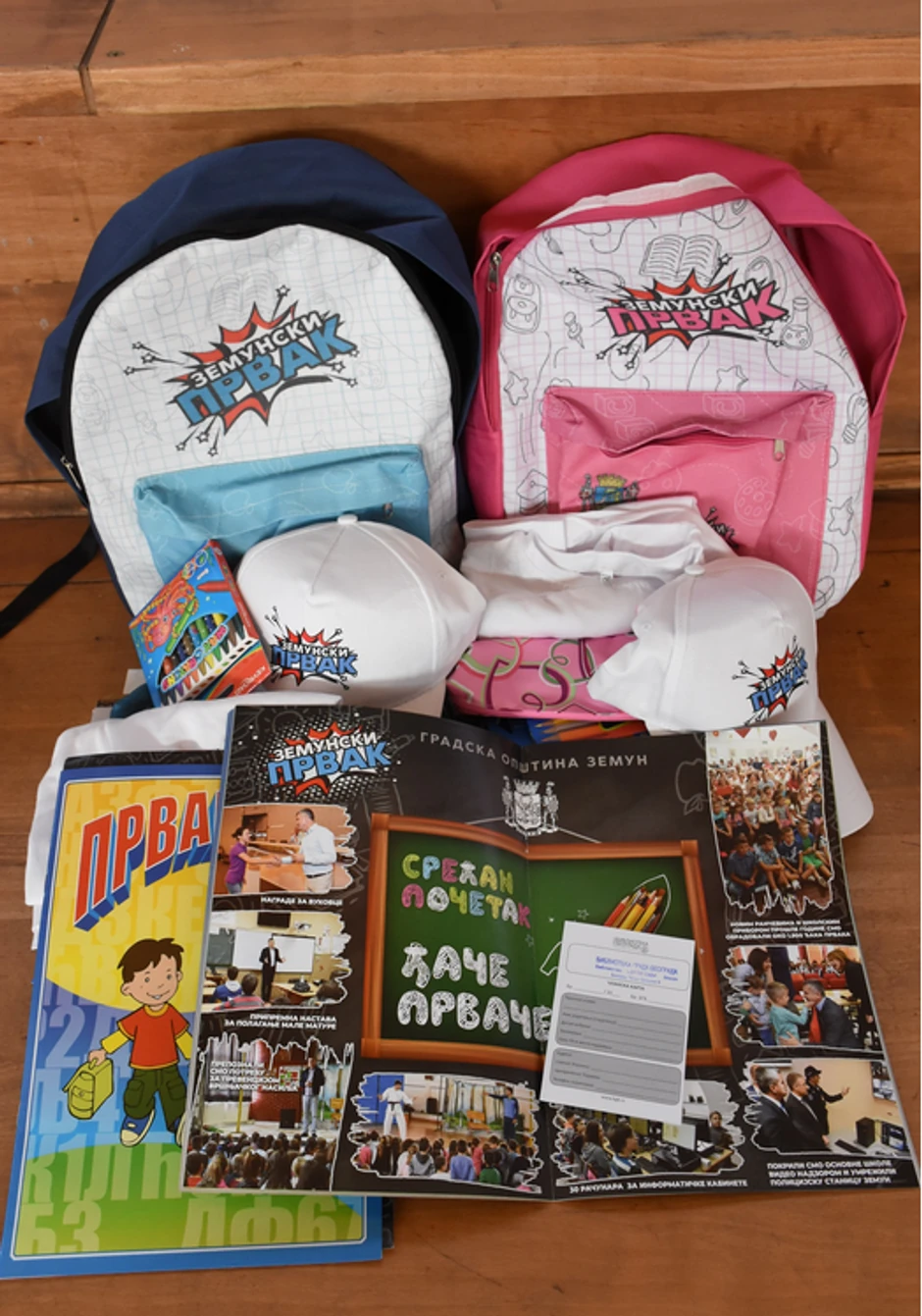 - Za skoro 1.900 prvaka koji pohađaju 21 osnovnu školu obezbeđeni su crveni i plavi rančevi, koji sadrže majice, kape, pernice, komplete pribora za pisanje i crtanje, sveske, raspored časova, pohvalnice, vodiče za đaka prvaka kroz školu - "Prvarica" i članske karte za zemunski ogranak Biblioteke grada Beograda – rekao je predsednik opštine Zemun Dejan Matić, koji je sa saradnicima pozdravio prvake i njihove roditelje.