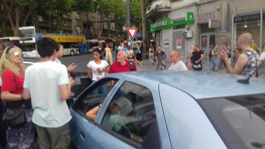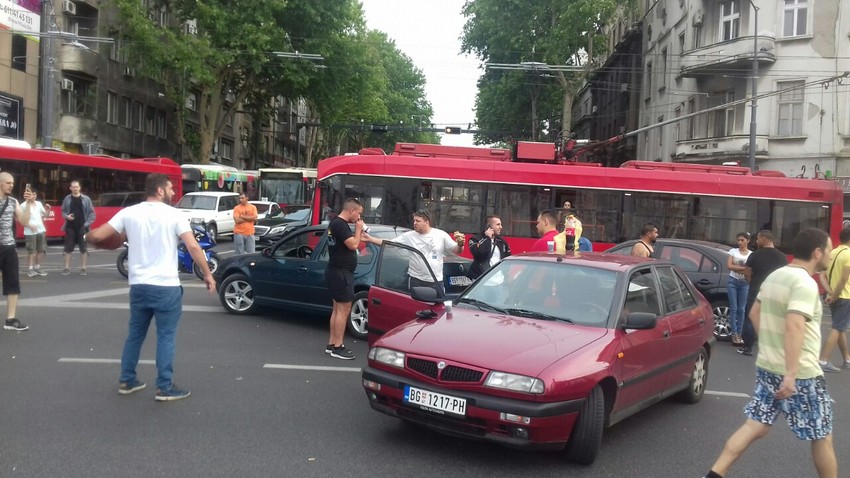 Reporteri "Blica" zatekli su na Slaviji dvadesetak vozača van automobila kako se dobacuju košarkaškom loptom, piju sok i jedu. Nešto posle 18.30 sati zatvorena je i Deligradska ulica, a stali su i tramvaji u Nemanjinoj.