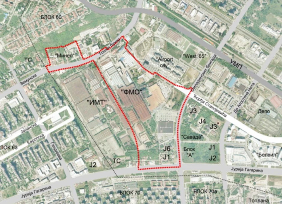 Na tom prostoru od oko 73 hektara IMT zauzima 25 hektara i njegova transformacija nije obuhvaćena nacrtom plana detaljne regulacije (PDR) prva faza - između ulica Jurija Gagarina, Omladinskih brigada, Đorđa Stanojevića, kompleksa "Erport siti", Zemunske ulice, kompleksa "Movem", lesnog odseka, zaštitne zone dalekovoda i planirane saobraćajnice Nova 4, uključujući i nju - koji je na javnom uvidu do 10. novembra u suterenu zgrade Gradske uprave, u Ulici 27. marta 43 - 45.
