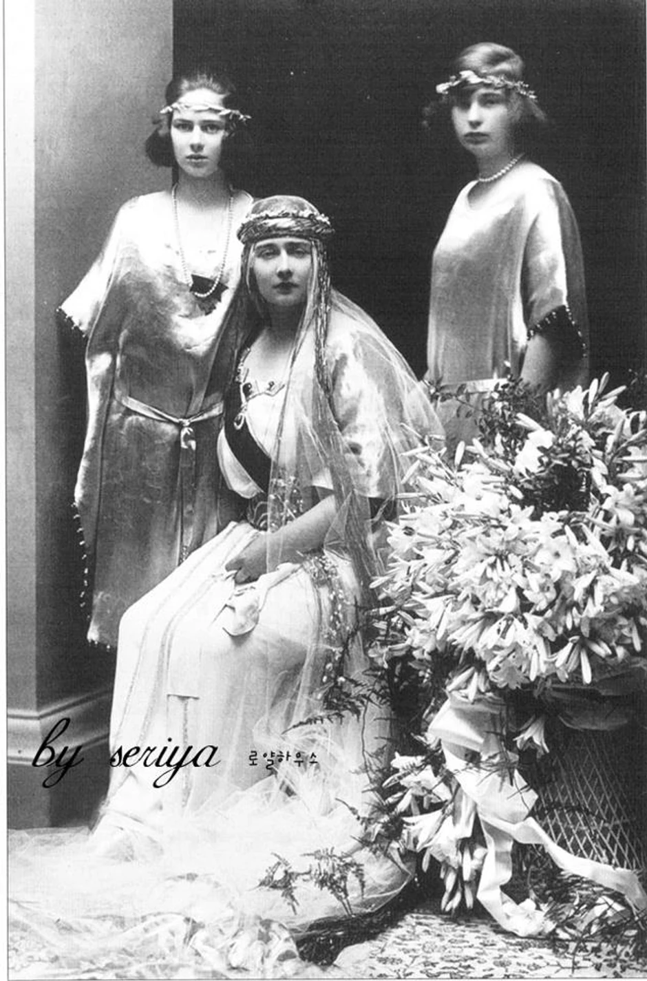 "On u svečanoj đeneralskoj uniformi sa svim dekoracijama, dignute glave, vedra čela, nasmejan, a ona, sveža, veličanstvenog izgleda u beloj haljini dugoga šlepa. Na glavi joj mladenački venac od mirte usađen na drugom vencu od zlatnog tela, koji se zrakasto pruža preko šlepa. Oko vrata širok đerdan krupnih plavih smaragda i dijamanata. Preko ramena lenta Belog orla."
