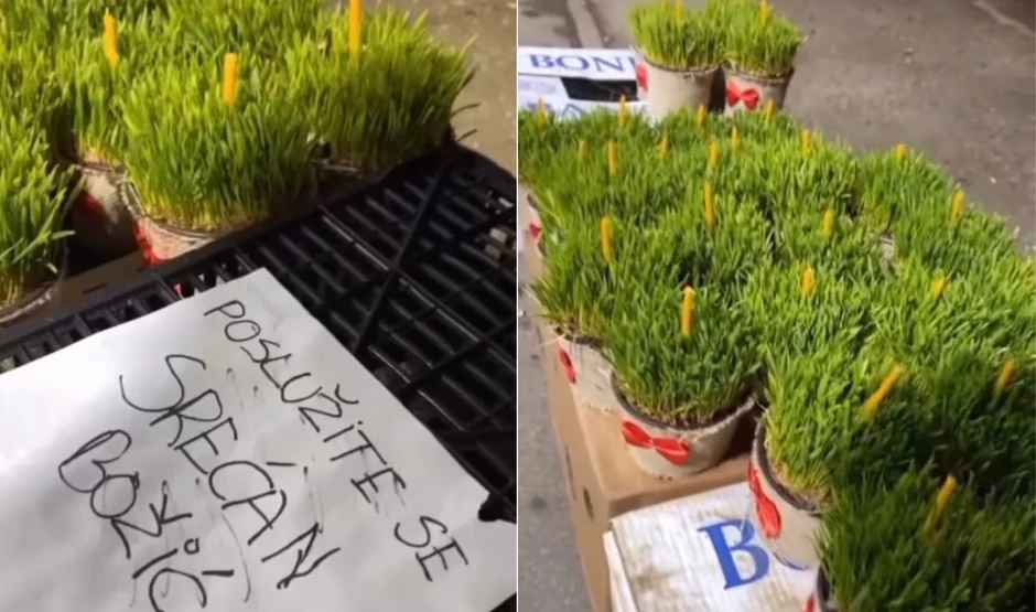 - Poslužite se srećan Božić - glasila je poruka na jednoj tezgi pored koje je stajalo više ukrašenih božićnih pšenica.