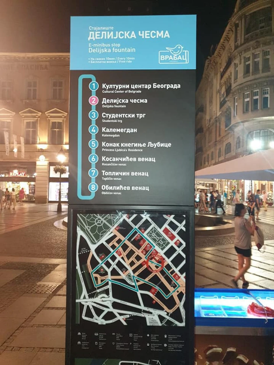 Kako se na njima može videti upisane su stanice - Kulturni centar Beograda, Delijska česma, Studentski trg, Kalemegdan, Konak kneginje Ljubice, Kosančićev venac, Topličin venac i, Obilićev venac, gde će vozila ići na punjenje.