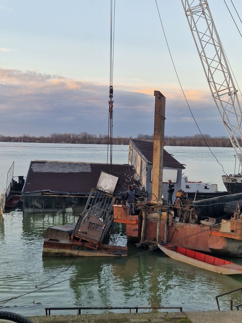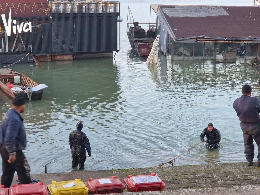 Splav "Magic" koji se nalazi na 25, maju, potonuo je, a sada su na licu mesta ronioci koji pokušavaju uz pomoć krana da podignu splav.