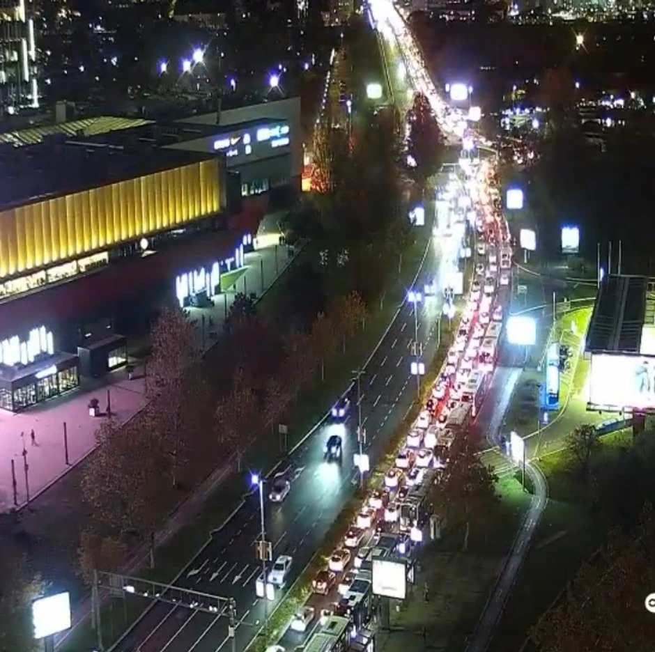 Kako se vidi na snimku uživo sa Naxi kamera, ogromna kolona vozila proteže se duž Bulevara Mihajla Pupina, a kako javlja naša reporterka sa lica mesta gužve su ogromne, te su ljudi počeli da izlaze iz gradskog prevoza i kreću peške.