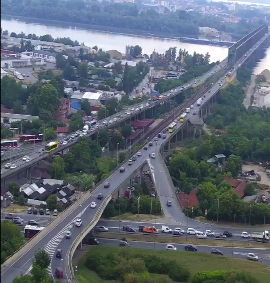 Na Brankovom mostu gužva je u oba smera, dok je na Gazeli opterećeniji smer ka Novom Beogradu, a na Pančevačkom mostu ka gradu. Na izlazima za auto-put su se formirali čepovi.