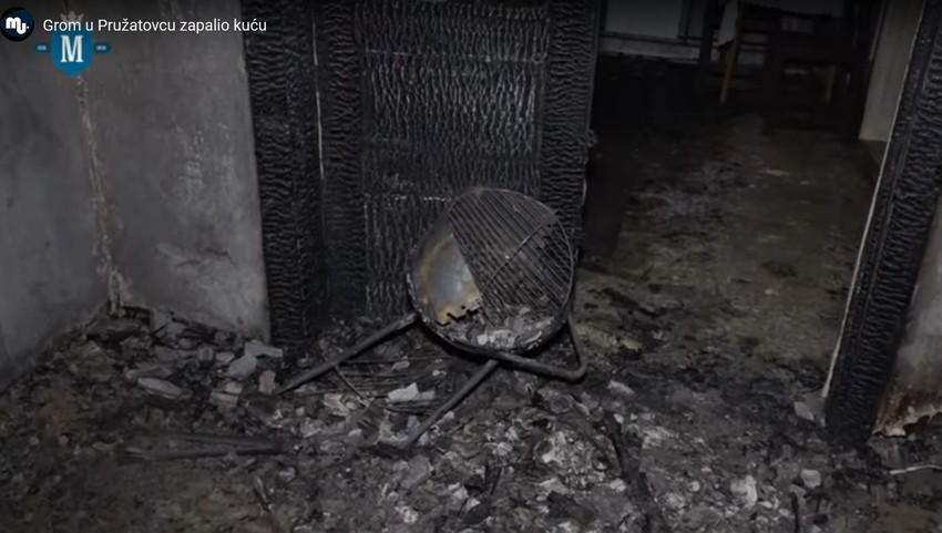 Kako se vidi na snimku koji je objavljen, grom je spalio unutrašnjost kuće, dok od nameštaja nije ostala ništa, već samo crnilo i garež, prenosi "Mladenovac Uživo".