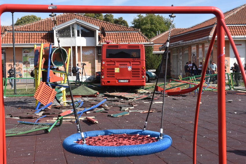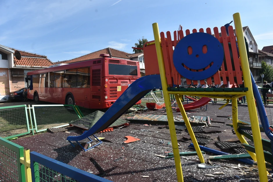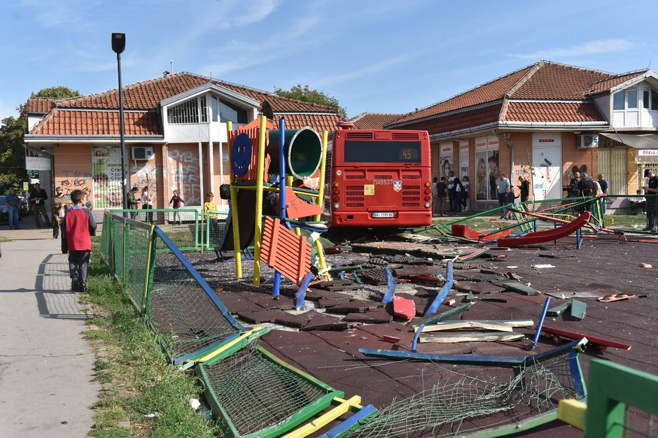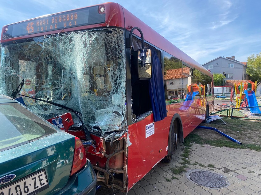 Četovor dece i nekoliko odraslih osoba povređeno je u stravičnoj nesreći koja se dogodila u Zemunu, u Krajiškoj ulici 71a, kada je autobus na liniji 45 izleteo iz krivine i uleteo u igralište.