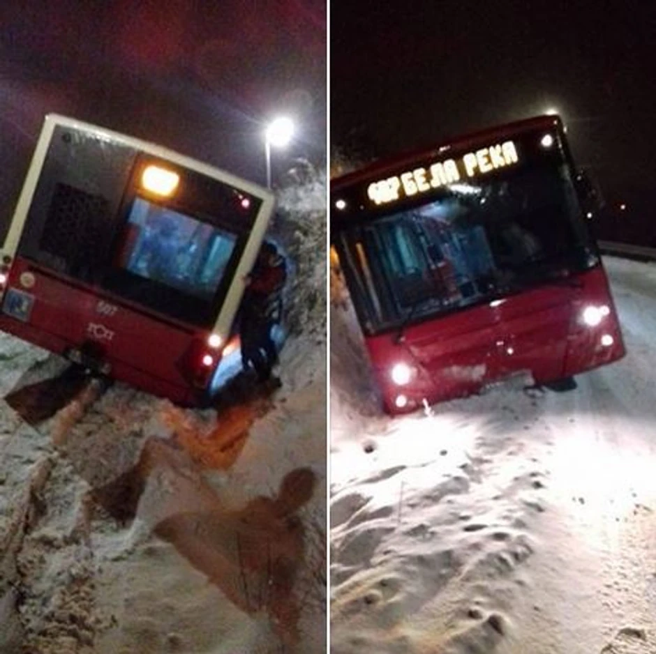Kako se može videti na fotografijama dostupnim na Fejsbuku, autobus se zaglavio u snežnom nanosu, a, srećom, i ovde su se pronašli dobrovoljci koji su se svojski potrudili da vozilo vrate na put.
