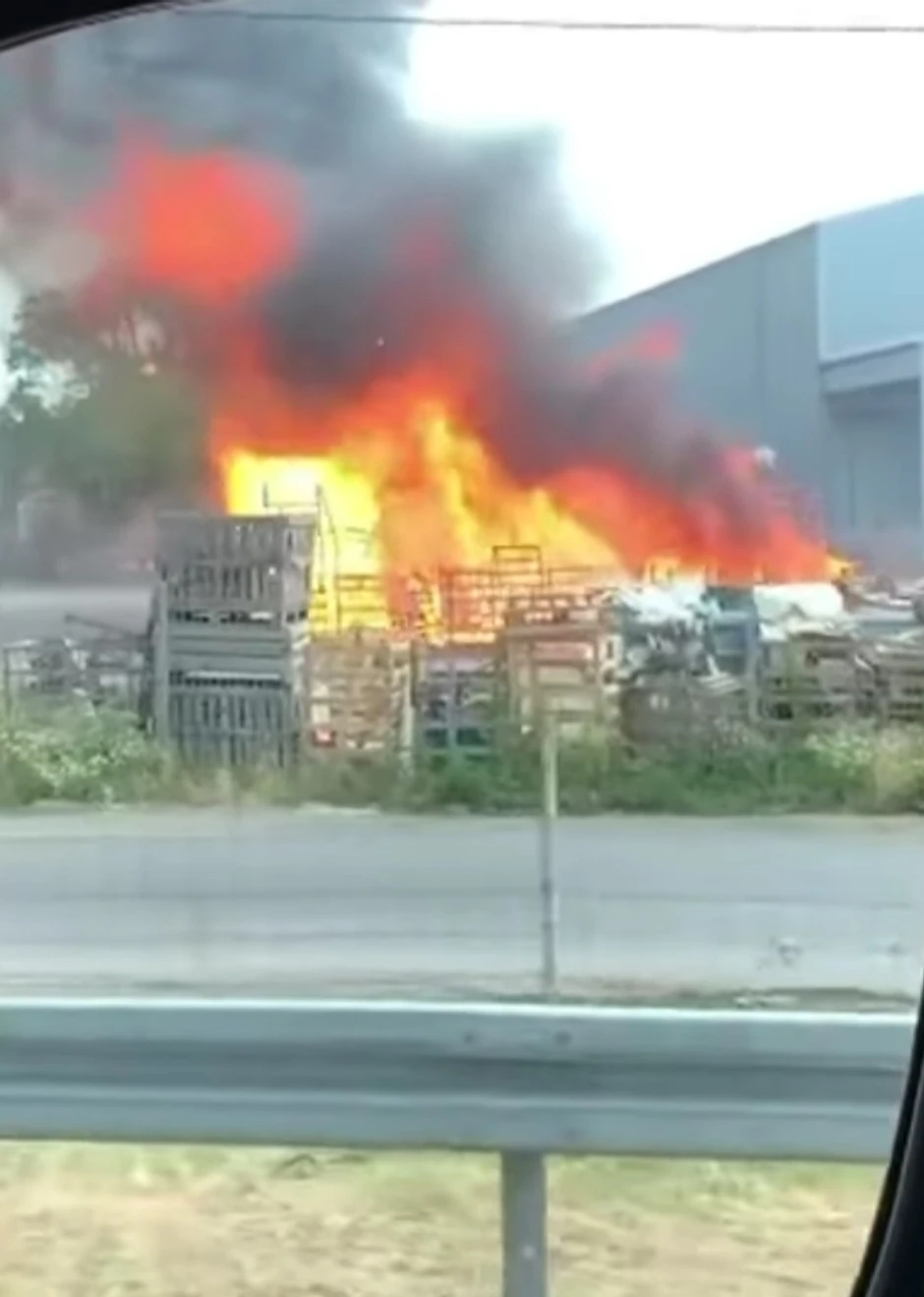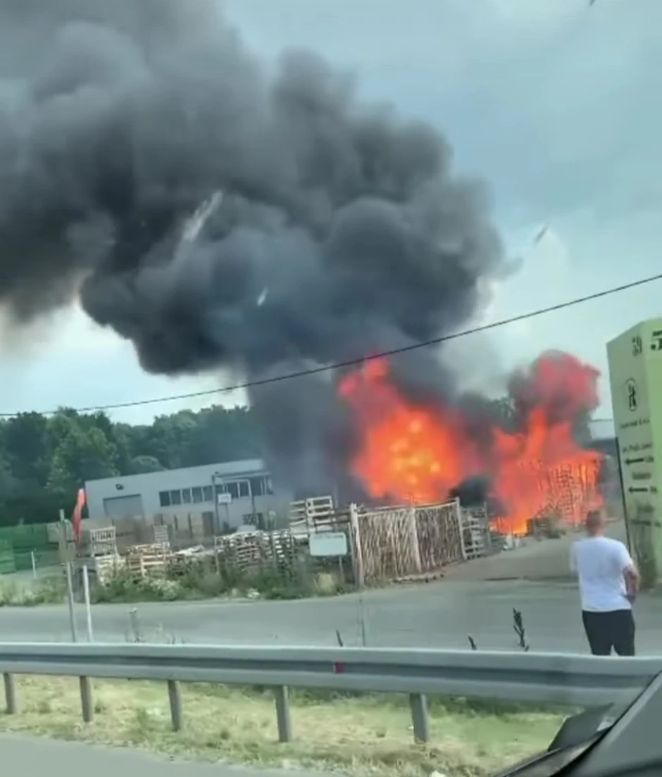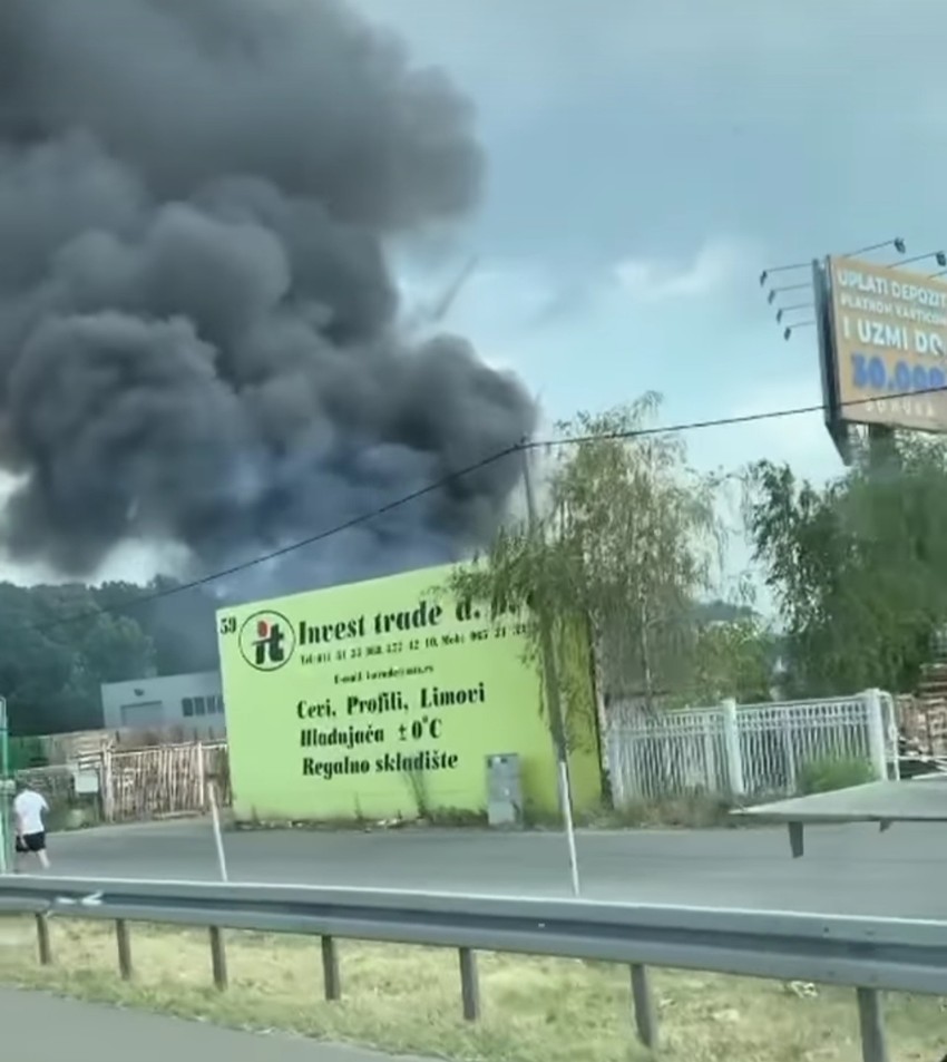 Može se takođe primetiti da je plamen zahvatio veliku količinu drvenih paleta koje su se tu nalazile.