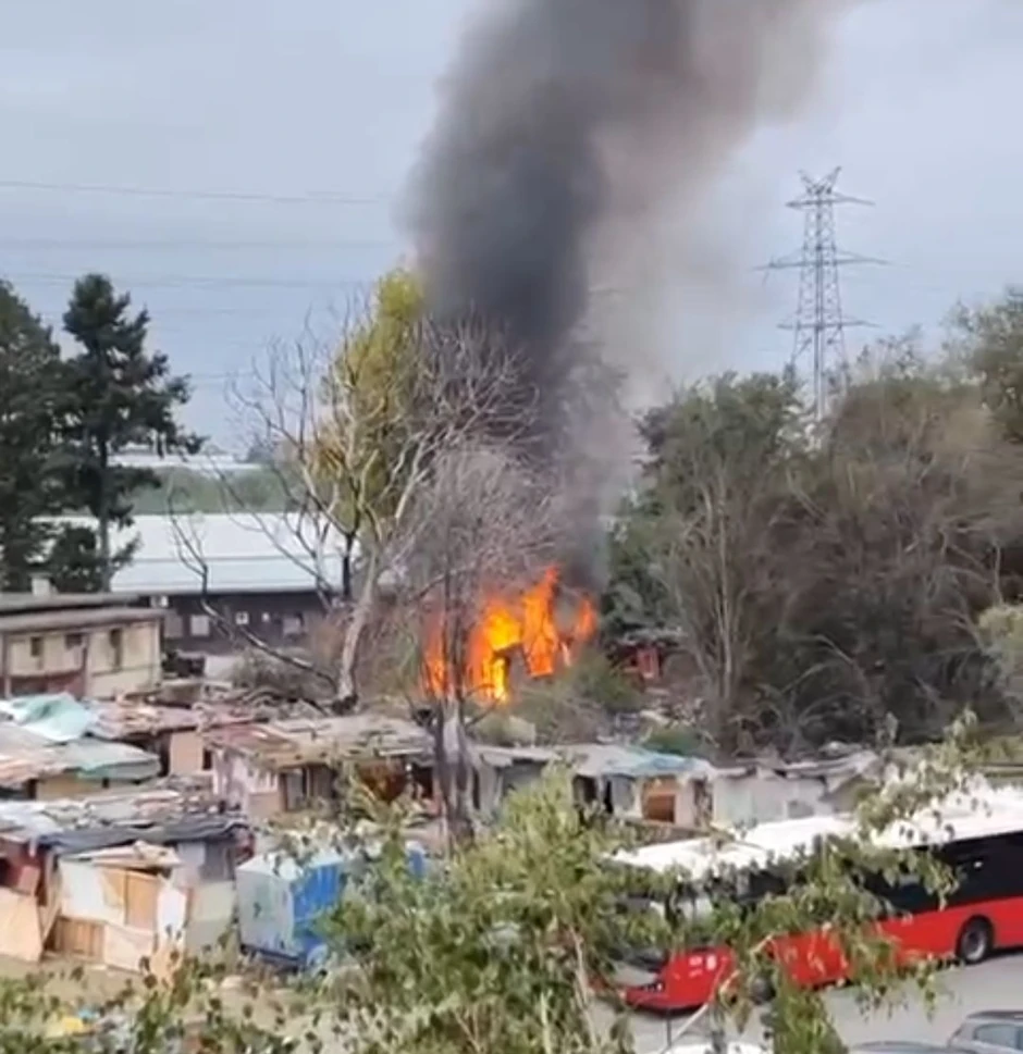Buktinja dopire iz jedne barake na Bežanijskoj kosi, dok se gusti dim širi okolo.