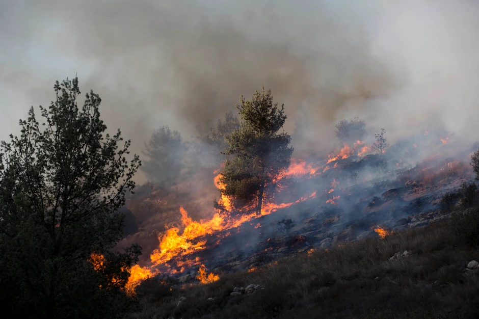 U ulici Prote Jeftimija Ivanovića bb, u naselju Busije u Beogradu gori trava na površini od oko 50 ari.