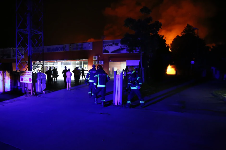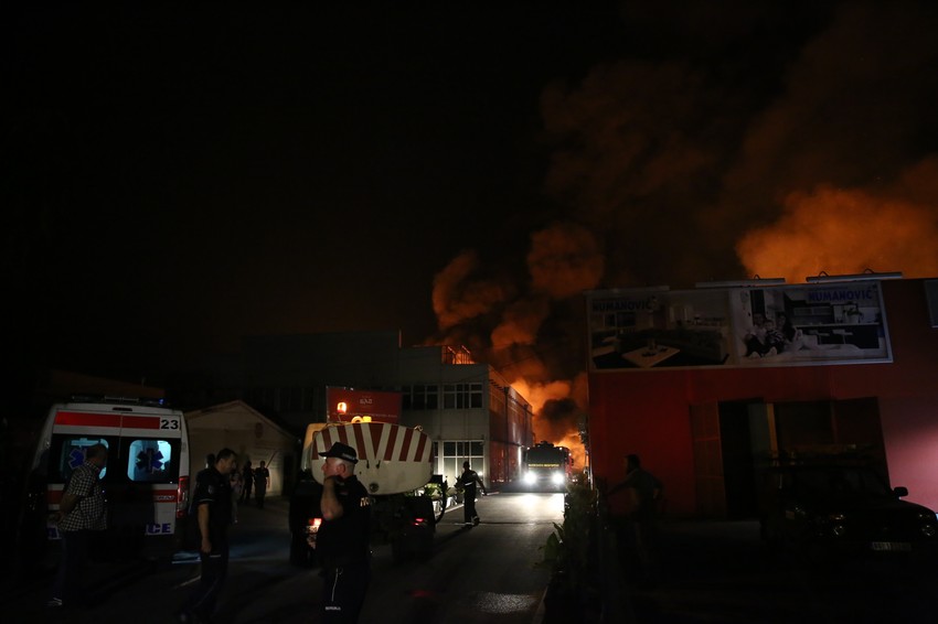 Vatrogasci su razbili prozore i ušli su u salon nameštaja u nameri da spreče dalje širenje vatre. Plamen je dostizao visinu do 20 metara.