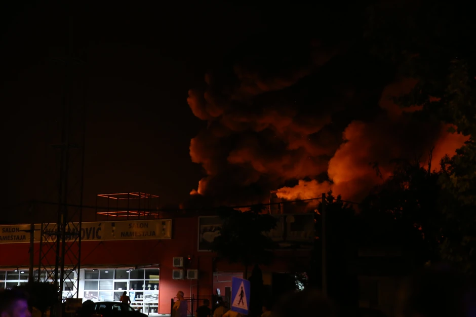 Kako su javili reporteri "Blica", vatra se iz magacina u međuvremenu proširila i na obližnji salon nameštaja "Numanović", a zahvatila je i krov kuće preko puta.