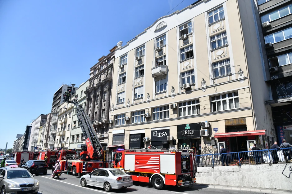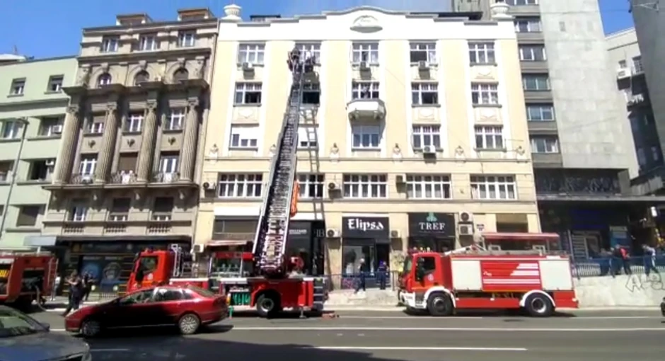 Na petom spratu zgrade kod Terazijskog tunela došlo je do požara,a veliki broj vatrogasaca spašavao je stanare koji su ostalil unutra.