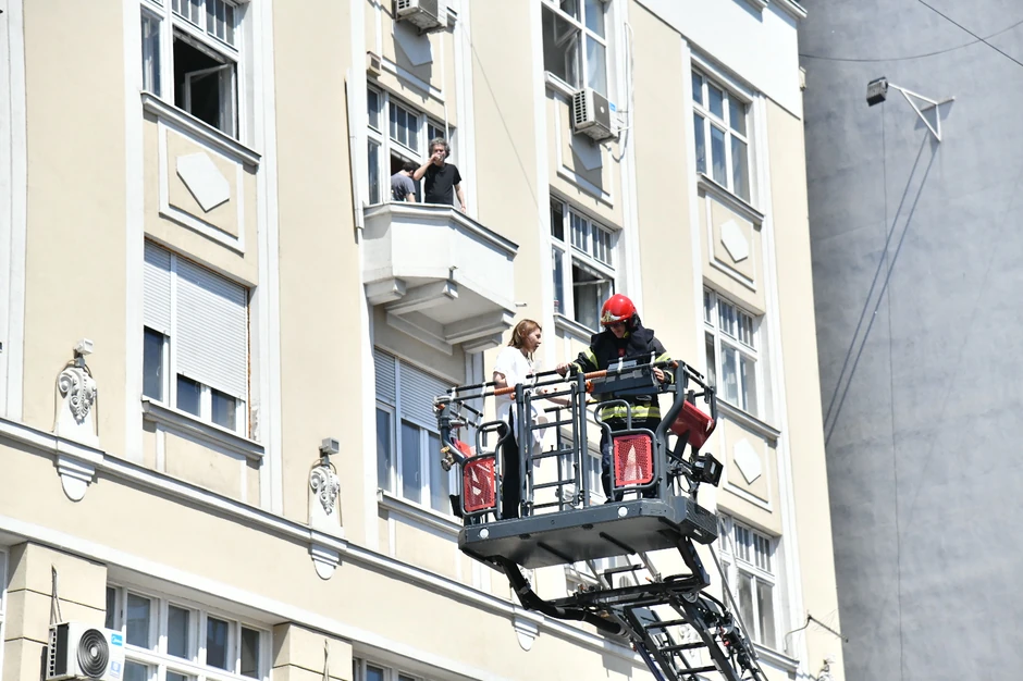 Kako javlja reporter "Blica", vatrogasci su neke građane zarobljene na četvrtom spratu spašavali preko prozora.