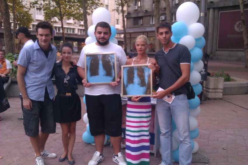 Akcija “Moja pluća su dobro”, deo velike kampanje širenja svesti protiv raka pluća, održana je uz podršku nekoliko stotina Beograđana i javnih ličnosti na Trgu Nikole Pašića.