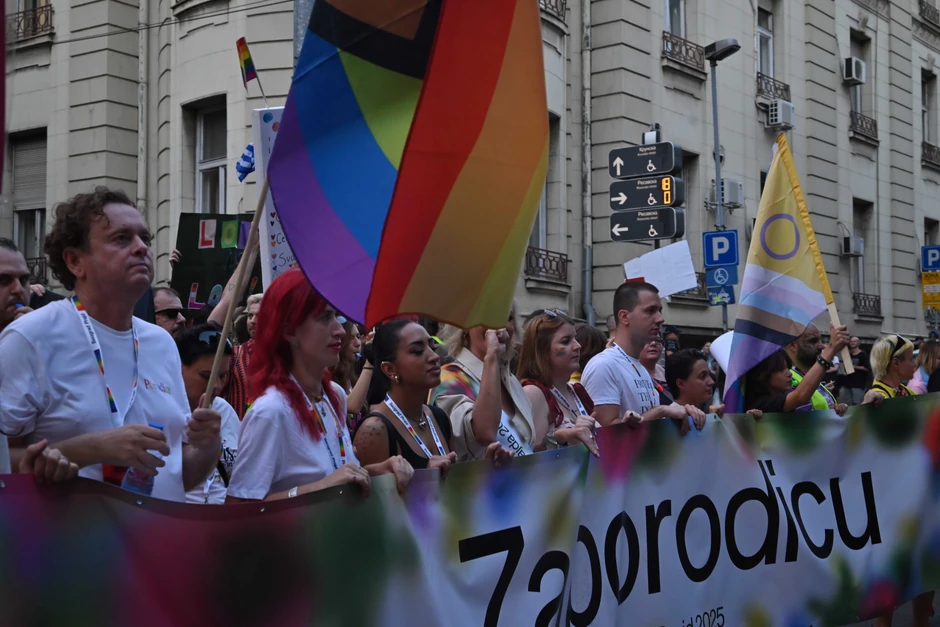 U toku su završne pripreme za današnju Prajd protestnu šetnju u okviru Beogradske Nedelje ponosa, atmosfera oko Parka Manjež je mirna, dok su pripadnici Interventne jedinice policije raspoređeni oko parka. U parku je i ovogodišnja kuma Prajda Olivera Kovačević. Ona se obratila okupljenima i preuzela lentu.