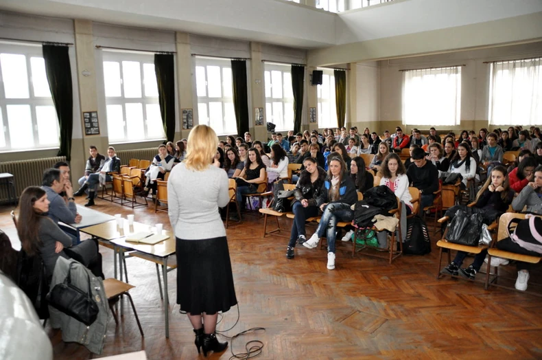 Pred oko 150 srednjoškolaca gosti tribine su bili Miroslava Pavlović ispred UG "Pokretač", Ana Simić i Milan Milosavljević, glumci Pozorišta na Terazijama i Nemanja Čubrilo bivši đak gimnazije i saradnik na projektu.