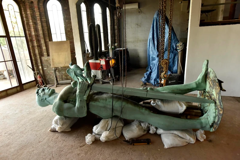 - Veza ptice i šake je olabavljenja, i ptica se bukvalno pomerala u svom ležištu. Mač se takođe klati, jer je veza labava. I u transportu, iako je bio dobro obezbeđen, videlo se da ti delovi nekako vibriraju na skulpturi, i da su te veze dosta loše - priča Kuzmanović.