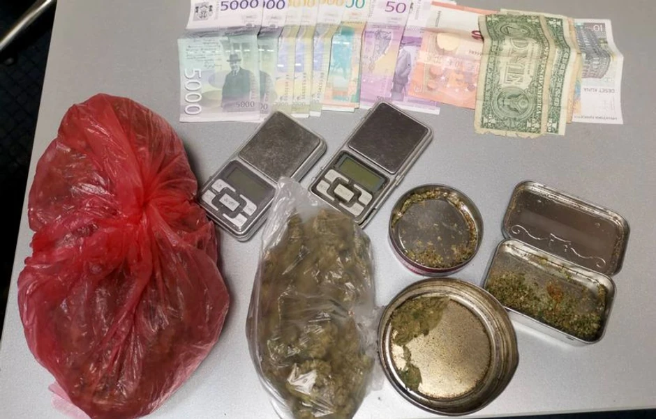 Policija je pregledom vozila marke „fijat bravo“ u kojem se nalazio osumnjičeni pronašla oko 250 grama marihuane i novac koji je, kako se sumnja, stečen prodajom narkotika, dok je pretresom stana u kojem boravi pronađena manja količina marihuane i dve vagice za precizno merenje.