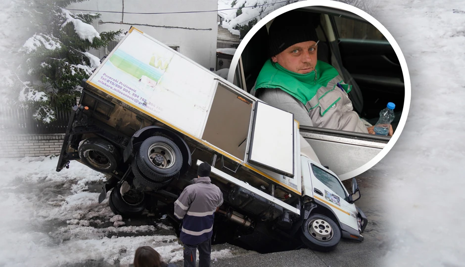 "Patos na kamionu je pukao kako je kabina skoro cela propala u asfalt, noge su mi bile praktično u kanalizaciji. Uspeo sam nekako da izađam na suvozačeva vrata, ni sam ne znam kako, bio sam sam, a i bio je mrak", priča za "Beograd na Blic" Goran Stojićević, vozač kamiona koji je jutros propao kroz rupu na asfaltu na Voždovcu.