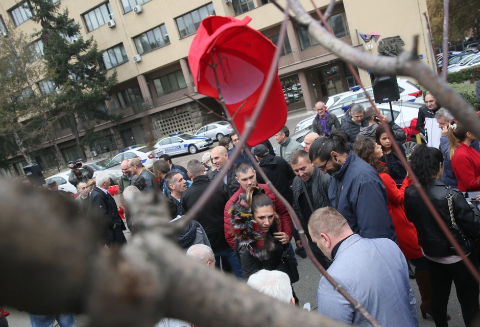 - Podneli smo pritužbu zbog nesavesnog, nezakonitog i neprimerenog rada i postupanja pojedinih zaposlenih u Policijskog upravi, Brigadi i Interventnoj jedinici 92, ali i "crvenim duksevima" i "crvenim kačketima" koji su iz prikrajka izdavali naredbe. Okupili smo se da kažemo "Stop crvenim kačketima" - rekao je Vučić okupljenima.