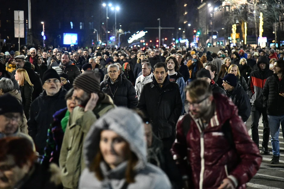 Okupljeni su se od Ustavnog suda uputili ka zgradi Radio-Televizije Srbije, od koje „Srbija protiv nasilja“ zahteva da izveštava o „dokazanoj izbornoj krađi i prekrajanju narodne volje“.