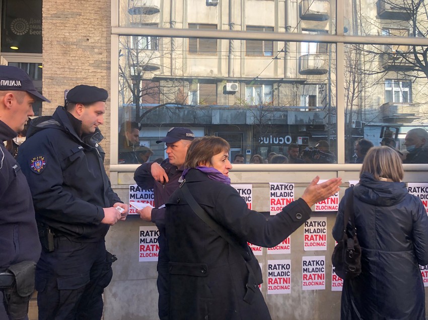 Na zidu Doma omladine u centru Beograda osvanuo je grafit podrške ratnom zločincu Ratku Mladiću - "Ratko Mladić srpski heroj", a danas oko 13 časova okupila se grupa građana koja preko toga prelepljuje nalepnice sa natpisom "Ratko Mladić ratni zločinac".