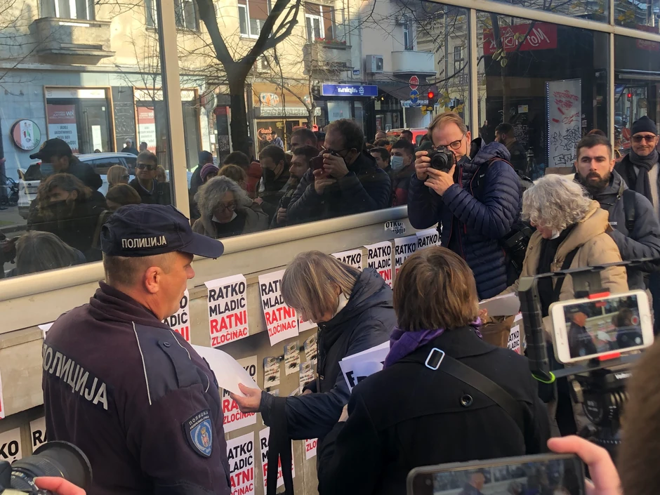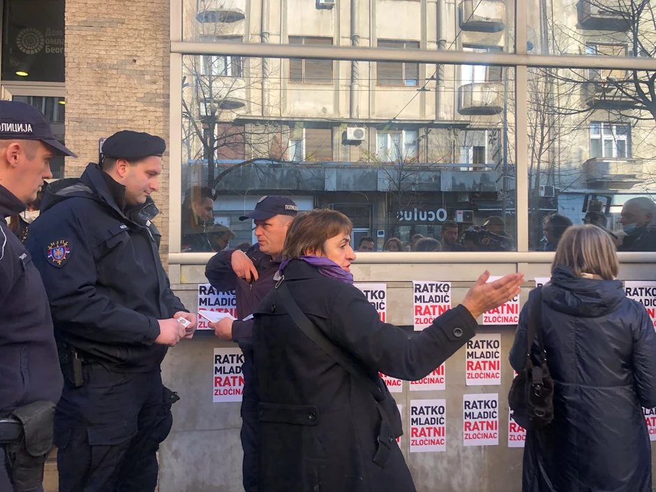 Među okupljenima su i Aida Ćorović, aktivistkinja za ljudska prava, kao i Nataša Kandić, osnivač Fonda za humanitarno pravo.