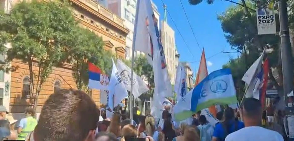 Grupa radnika i studenata krenula je u protestnu šetnju od Terazija do Ministarstva rada.