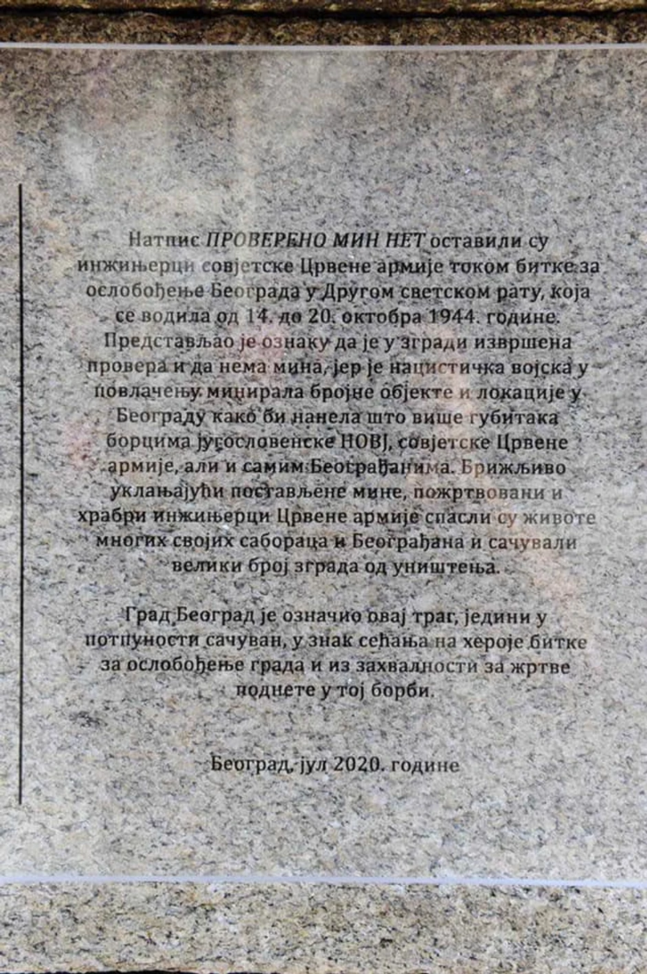 - Natpis smo zaštitili, podsetili na njegovo značenje i na taj način, kao Grad Beograd i Republika Srbija, odali poštovanje prema onima koji su u Crvenoj armiji deminirali mine i spasili desetine hiljada života i sačuvali sećanje na jedan deo naše istorije, na ono što se dešavalo u našem gradu - rekao je Vesić.