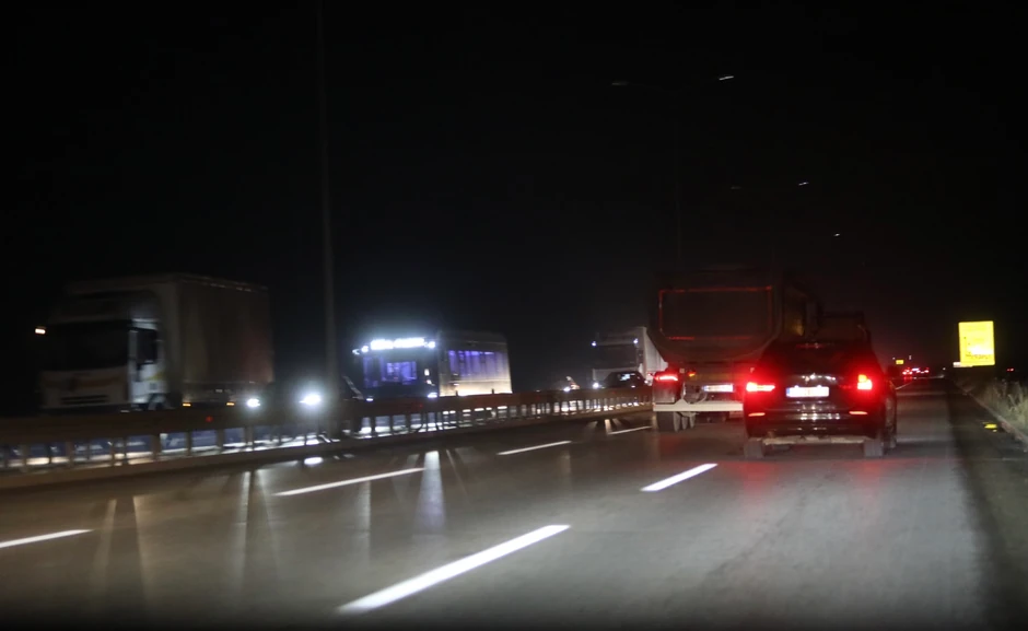 Mrkli mrak i kolone vozila - tako je večeras izgledao Pupinov most, koji je bio potpuno blokiran.