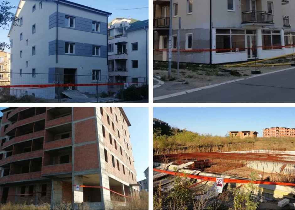 Kako se može videti na fotografijama, dve zgrade deluju potpuno završeno, jedna delimično, dok su dve zabranjene gotovo u temelju.