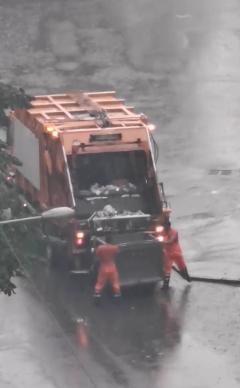 Naime, na snimku se vide radnici koji prazne kontejner na svojoj ruti i nastavljaju čišćenje čak i pored nevremena koje je danas zahvatilo pojedine delove Srbije.