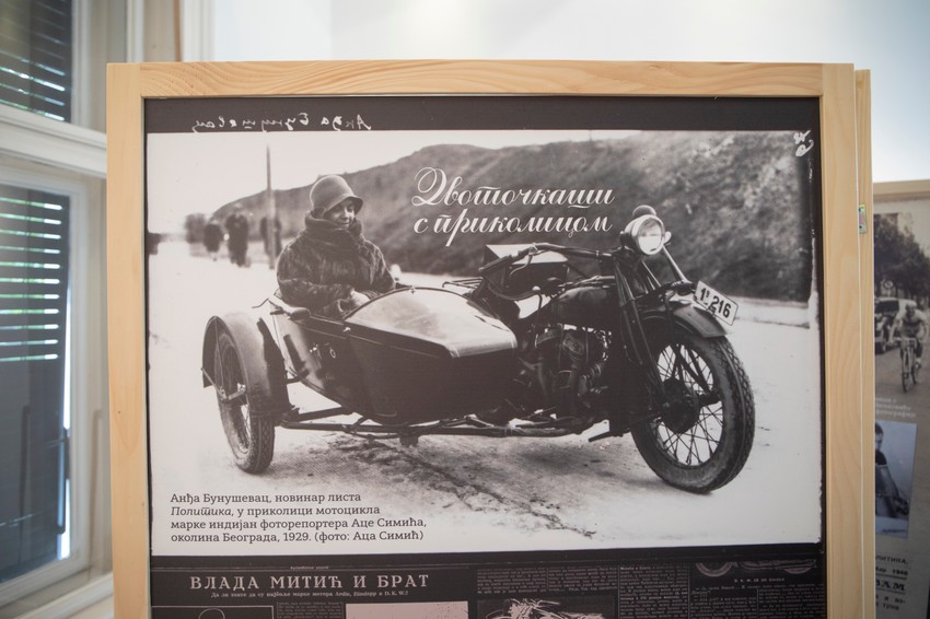 - Nebojša Đorđević, jedan od najvećih poznavalaca istorijata automobilizma u Srbiji, poklonio mi je fotografiju iz 1929. moje babe tetke Anđe Bunuševac, prve žene u Srbiji sa vozačkom dozvolom posle kraljice Marije i prve žene novinara "Politike". Na fotografiji je vidimo na terenu, u prikolici motocikla fotoreportera Ace Simića sa kojim je sarađivala - kaže Branka Đorđević Nakaniši.