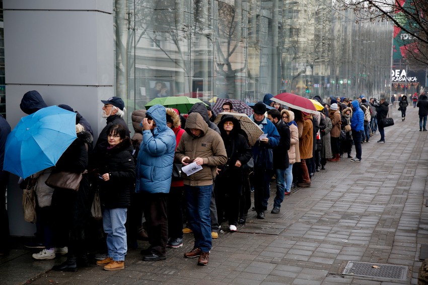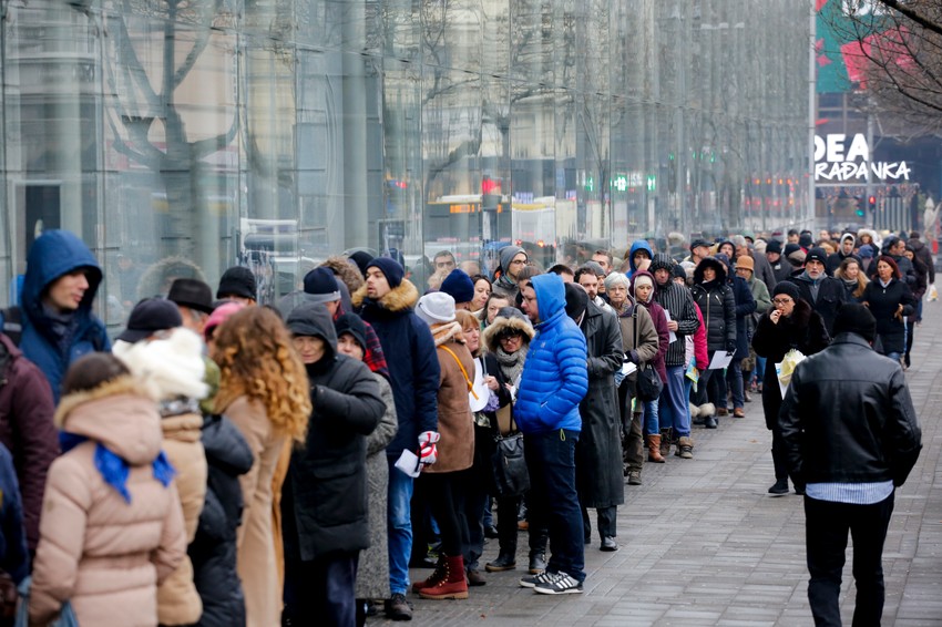 Ni temperatura oko nule, ni sve jači vetar, ni sneg koji je povremeno padao, nisu sprečili pojavu kilometarske kolone u centru grada.