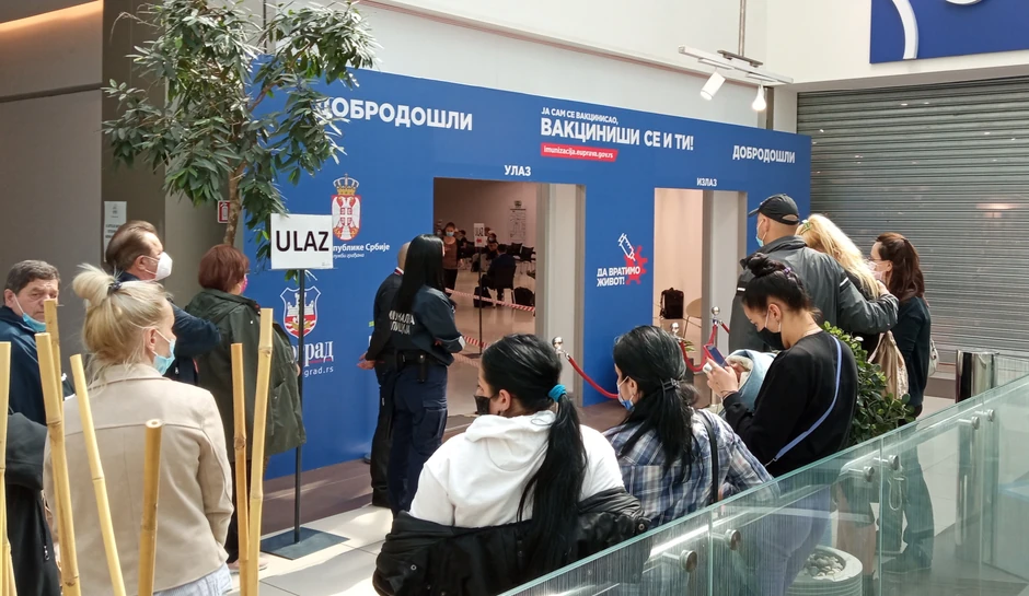 U tržnom centru Ušće u Beoradu od danas od 9 časova otvoren je vakcinalni punkt gde će građani moći da se vakcinišu protiv korone bez zakazivanja, a moći će da biraju trenutno dostupne vakcine. Ogromne gužve stvaraju se od jutros, jer prvih 100 dobija poklon vaučer.