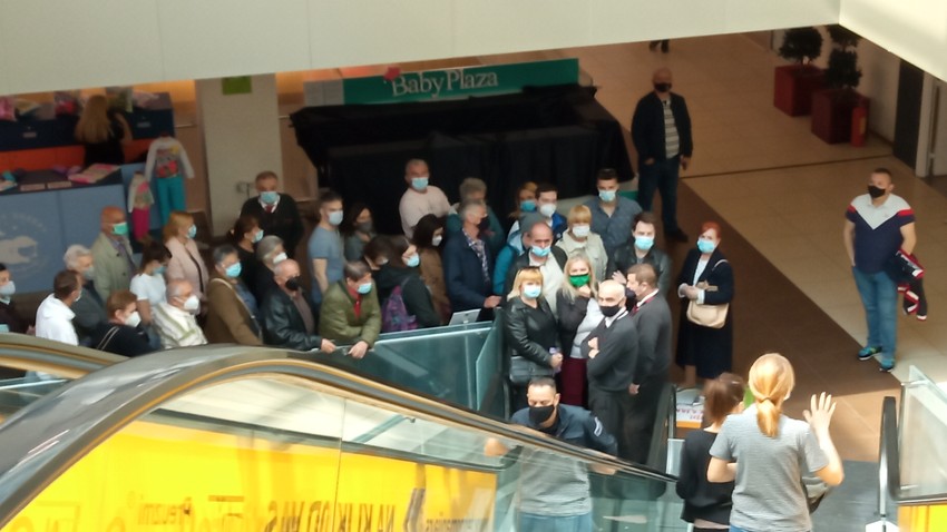 Red ispred tržnog centra je počeo da se pravi još pre osam časova, javalju naši reporteri.