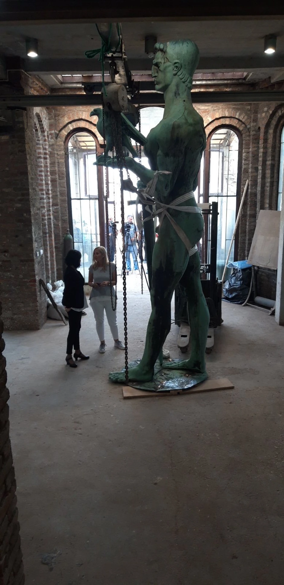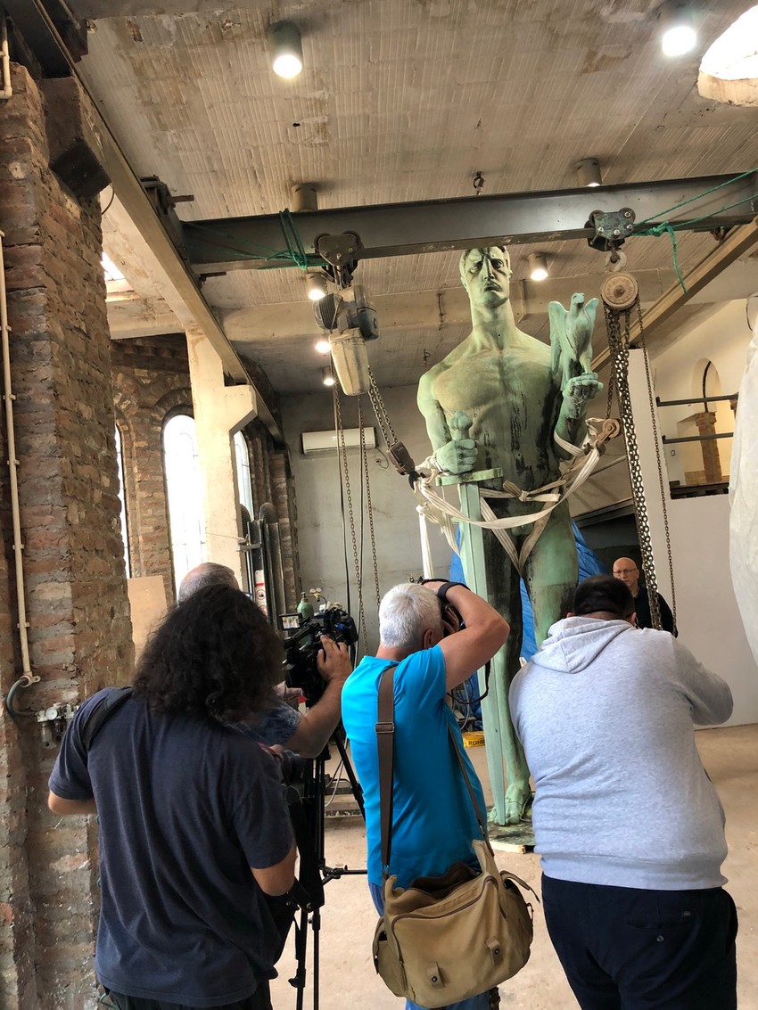 Drugi korak je rešavanje problema narušene statičke sigurnosti skulpture, a to je i najzahtevniji zadatak i uzrok zašto je skulptura morala da bude dopremljena u radionicu.