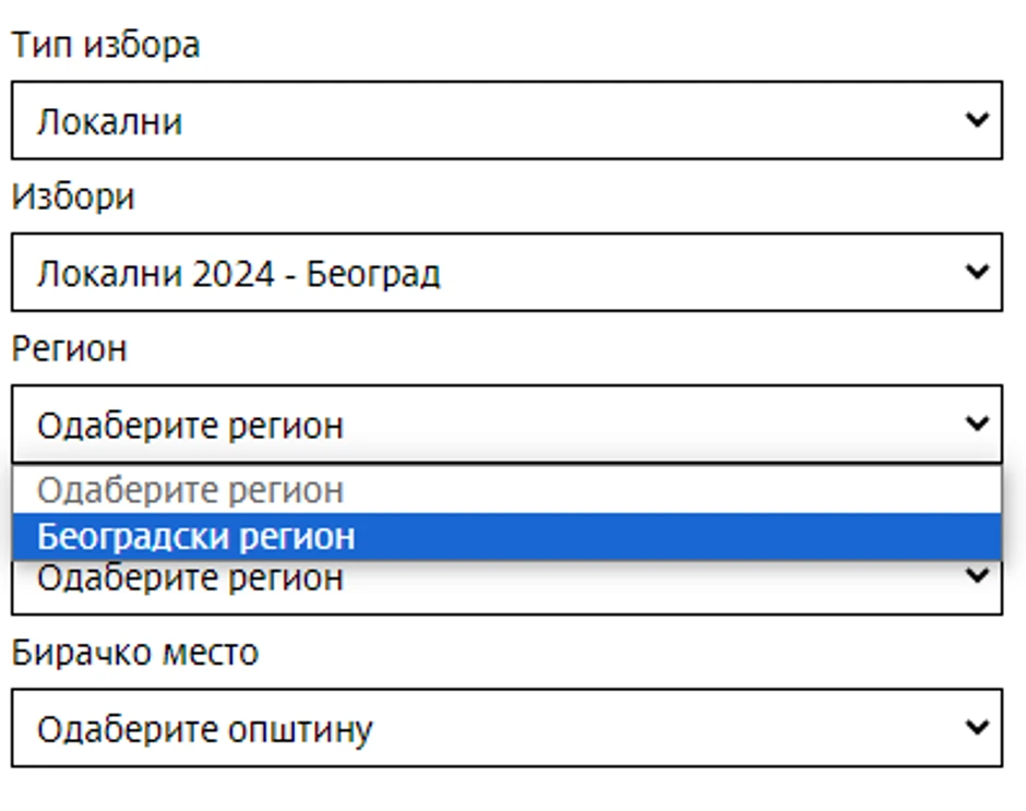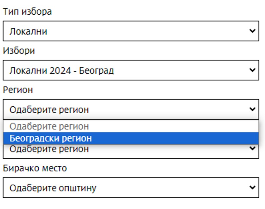 Zatim će vam dalje na opciju izbori u padajućem meniju odabrati lokalni 2024 - Beograd.