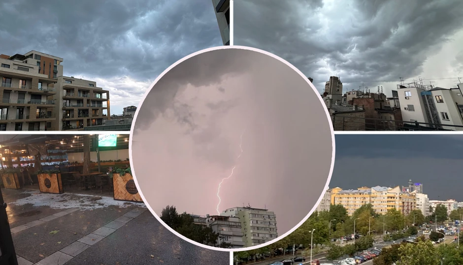 Olujno nevreme praćeno grmljavinom i pljuskovima pogodilo je Beograd. Crni oblaci nadvili su se nad glavnim gradom. Republički hidrometeorološki zavod upozorava da se očekuje jak grad i olujni vetar.