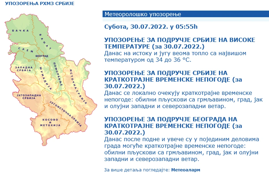 Na području cele Srbije na snazi je narandžasti meteo-alarm, što znači da je vreme opasno.