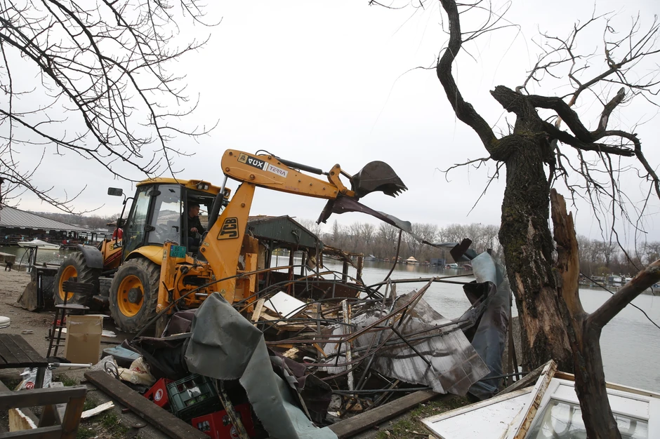 U toku je rušenje splava "Gusar" na Savskom keju, na terenu su pripadnici policije i komunalci koji iznose stvari, a tu je i bager koji je počeo sa rušenjem objekta.