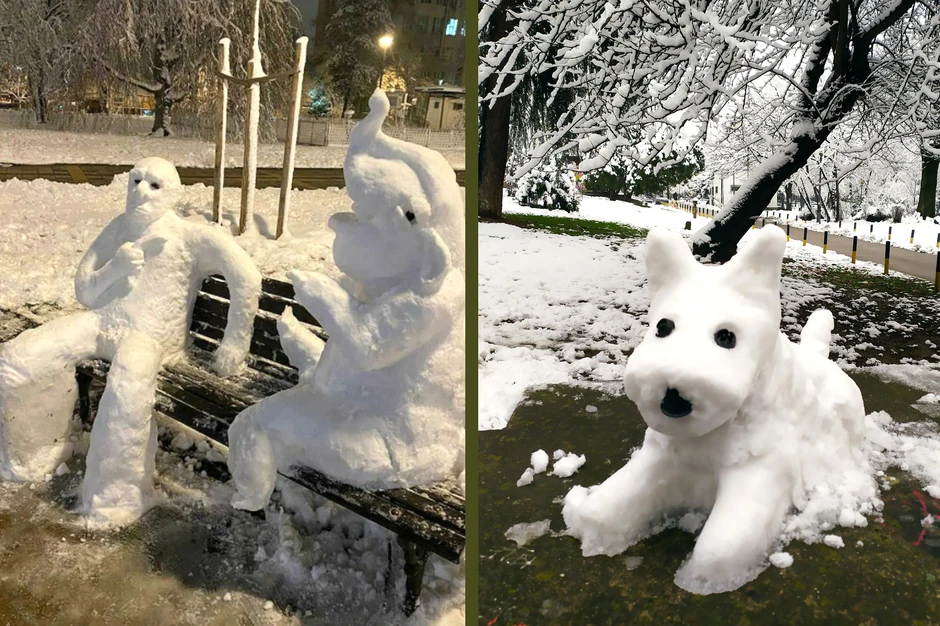 Obilne padavine iskoristili su stanovnici prestonice i to na veoma kreativan način. O tome svedoče snežne figure u parku kod Hrama Svetog Save, ali i pas kod Fakulteta muzičke umetnosti.
