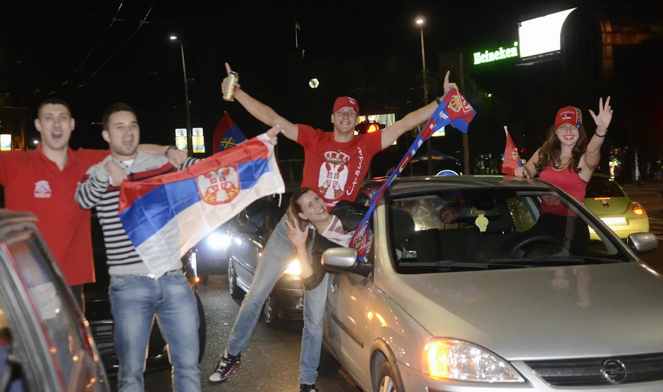 Srpske košarkašice koje su pokorile Evropu i srpski vaterpolisti koji su u finalu Svetske lige pobedili Hrvatsku izveli su večeras na Trg republike presrećne sugrađane koji su slavili velike pobede.