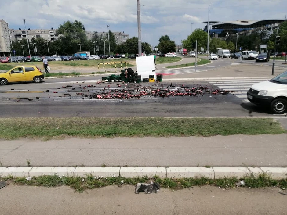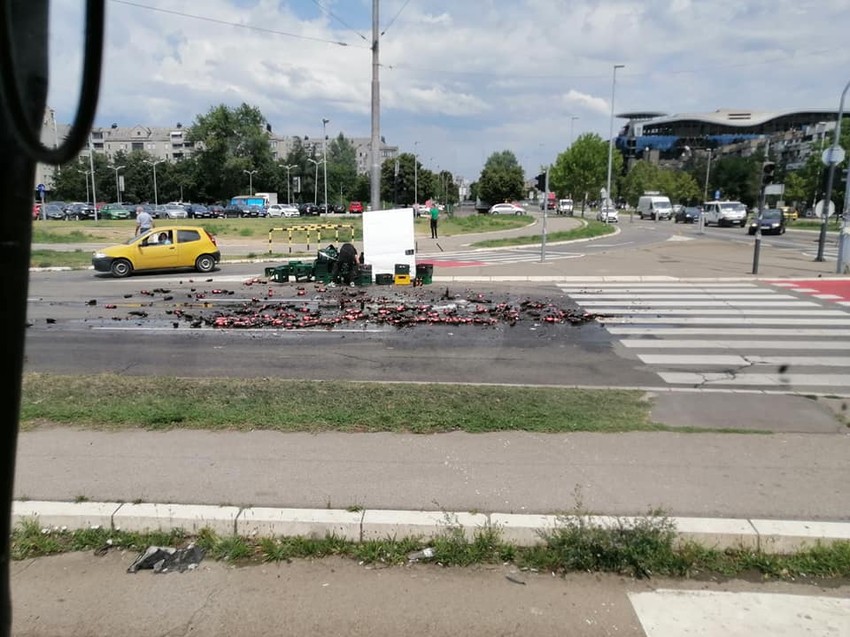 Naime, do nje je došlo kada su se na kombiju koji je transportovao pivo, pri vožnji otvorila vrata, pa je veliki broj staklenih flaša završio na ulici.