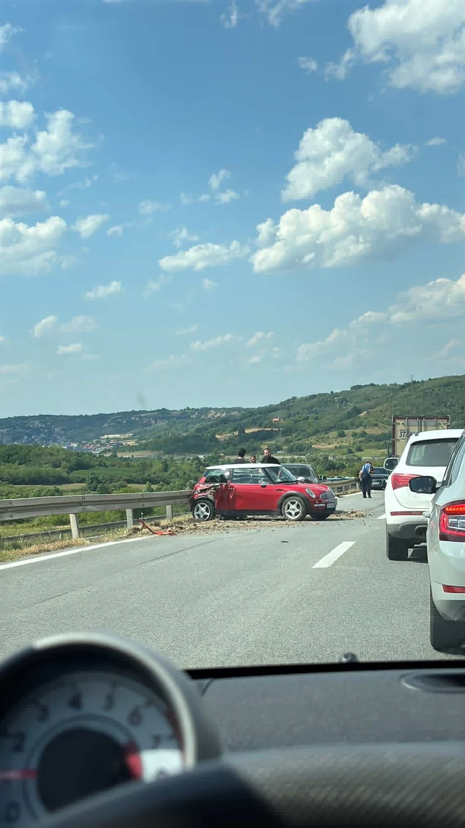 Saobraćajna nezgoda, u kojoj su učestvovala dva vozila, dogodila se ovog popodneva malo pre skretanja za Grocku, na auto-putu iz pravca Niša ka Beogradu.