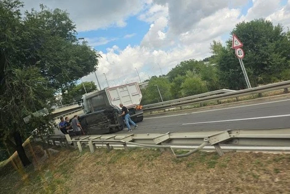 Kako se vidi na fotografijama i snimcima sa lica mesta do saobraćajne nesreće jedan automobil prevrnuo se pored teretnog vozila. Do nezgode je, sudeći prema snimcima, došlo na prilazu mostu u smeru ka centru grada na Čukarici.
