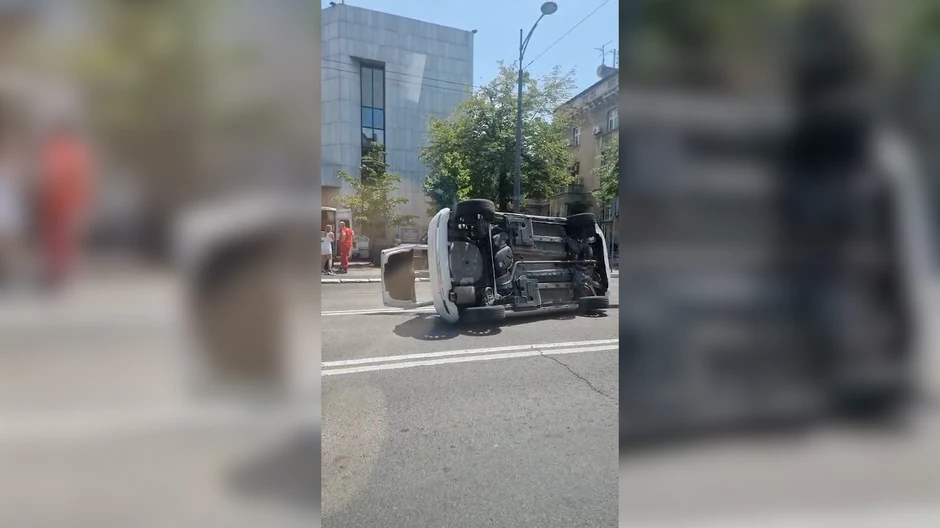 Kako se može videti na fotografijama objavljenim na društvenim mrežama, u smeru ka centru grada jedan automobil stoji prevrnut na bok.